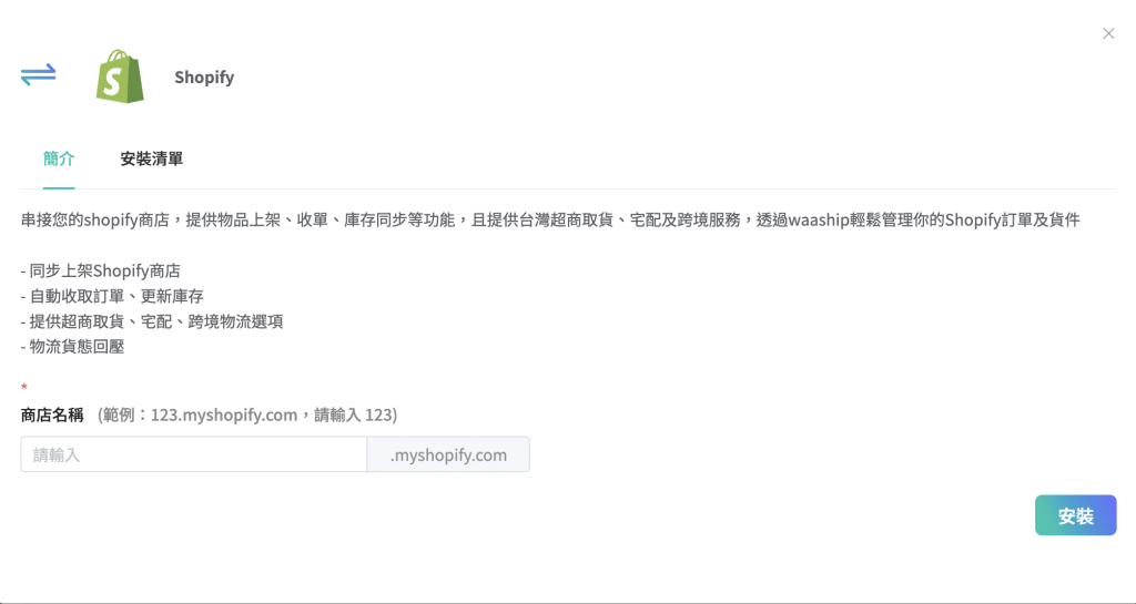 串接 waaship 和 Shopify 商店,可自動同步訂單、產生寄貨單,並回傳貨物追蹤編號給顧客,方便管理和查詢。