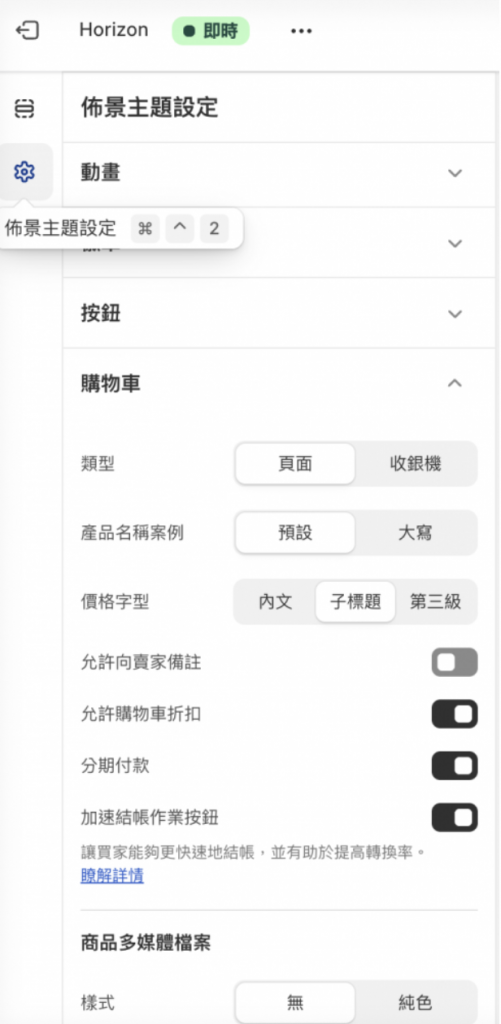 為了讓顧客在結帳時,能統一使用您的主要結帳流程,您可以隱藏動態結帳按鈕。以下是詳細設定步驟: