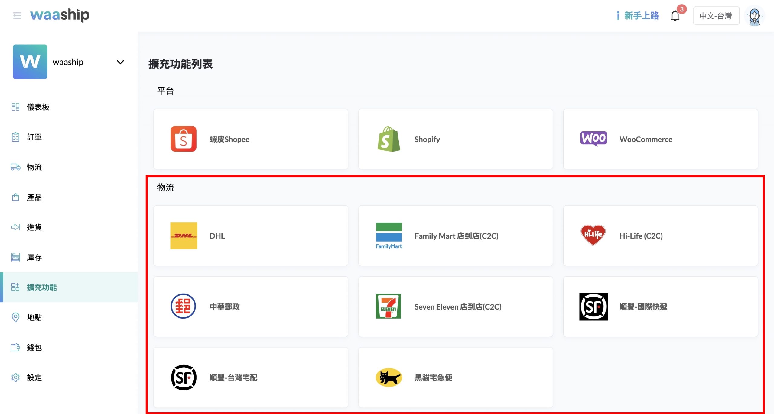waaship 串接各大物流商服務,包含超商取貨/宅配/郵局/跨境等物流,還能享有多數物流的優惠價格!想知道怎麼開啟waaship的物流服務嗎?快來跟著這篇說明操作吧!